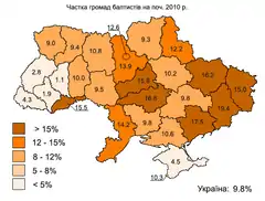 Особливе питання для України — це релігійні громади протестантів, до яких належать як відверто харизматичні церкви, так і велика маса євангельських (баптистських) церков. Щодо кількості громад, то вона сягає понад 8.000 і у більшості областей держави становить до 50 % всіх церковних організацій. До протестантів належать 2,4 % населення України, що становить 1,125 млн осіб. Щотижня відвідують протестантські богослужіння близько 820 тисяч осіб. Це на 30 тисяч більше, аніж в УПЦ МП. Таким чином, більшість вірян протестантських конфесій є активними, що відрізняє їх від решти конфесій.