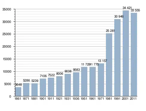 Станом на 31 грудня 2014 року в муніципалітеті офіційно проживало 1588 іноземців з 96 країн, серед них 494 громадяни країн Євросоюзу та 68 громадян України.[4]