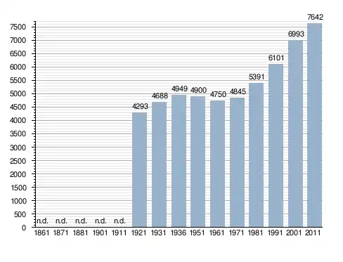Станом на 31 грудня 2014 року в муніципалітеті офіційно проживало 428 іноземців з 45 країн, серед них 217 громадян країн Євросоюзу та 7 громадян України.[4]