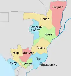 У адміністративному відношенні країна поділяється на 10 департаментів та комуну Браззавіль.
