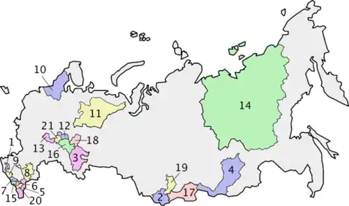 Російська Федерація складається з 83 суб'єктів, 21 з яких є республіками[1]. Загалом республіки займають 28,6 % території Росії, у них проживає 16,9% населення країни.