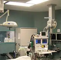 Респіратор (медицина) – прилад для підтримання газообміну в легенях в умовах порушеного природного дихання; найбільшого поширення набули апарати, що примусово вдувають (однофазне дихання), а також вдувають і відсмоктують (двофазне дихання) повітря з легень.
