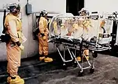 Комерційний продукт, відомий як костюм Racal або скафандр Racal — це переносний засіб особистого захисту, який складається з пластичного костюма та PAPR, оснащеного фільтрами HEPA, які подають відфільтроване повітря до каптура надлишкового тиску (також відомого як витяжка для костюму Racal). Команди Aeromedical Isolation Team (AIT) використовували костюми Racal, для евакуації пацієнтів з високо-інфекційними захворюваннями для лікування.