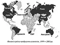 Табл. Запаси бокситів на межі ХХ–XXI ст. (млн т)