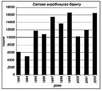 Обсяг видабування бариту у 2016 р. в світі - 375 млн. т. Лідер - Китай (100 млн. т.).