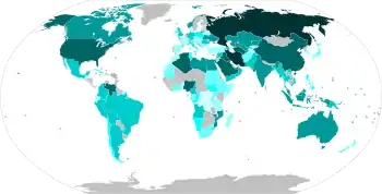 Запаси природного газу розвідані в 102 державах (табл.). Близько половини всіх доведених запасів природного газу припадає на країни, що розвиваються, приблизно 40 % — на країни з плановою і перехідною економікою і лише бл. 8 % — на індустріально розвинені країни. У країнах-членах ОПЕК концентрується 41 % запасів.