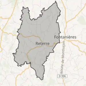 - Розташування муніципалітету Ретерр на мапі Франції та сусідні муніципалітети