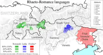 В кінці існування Римської імперії тут існувала неперервана область романської мови, яка поступово розбивалася на відокремлені діалекти у високих долинах, межуючи з німецькими діалектами на півночі та гало-італійськими мовами з півдня.