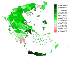 В день референдуму електорат голосував в основному за республіканську форму. Крит дав більш ніж 90 % своїх голосів за республіку, тоді як в інших округах кількість голосів складала 60–70 %. Найбільший рівень підтримки монархії був в Пелононнесі і Фракії, з рівнем бажання республіки в 45 %. Округи, де більшість проголосувала за монархію були Лаконіка (59.52 %), Родопи (50.54 %), Мессенія (49.24 %), Еліда (46.88 %) та Агрос (46.67 %).