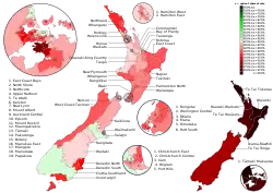 Тільки в 6 із 71 виборчих округів новий прапор набрав понад 50 % голосів (див. карту): Бей оф Пленті, Клута-Саутленд, Іст Коуст Бейз, Айлем, Селвін і Тамакі.[11]