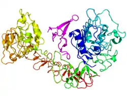 EGFR (англ. Epidermal growth factor receptor) – білок, який кодується однойменним геном, розташованим у людей на короткому плечі 7-ї хромосоми.[5] Довжина поліпептидного ланцюга білка становить 1 210 амінокислот, а молекулярна маса — 134 277[6].