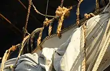 Кріплення вітрил до рей здійснюється просиленими через люверси відрізками троса — ревантами (рей-бандами, рей-бантами). На старовинних суднах вітрило кріпилося безпосередньо до реї, пізніше стали застосовувати кріплення до леєра, протягнутого вздовж неї. Нокові кути вітрил принайтовуються до ноків бензелями (обв'язками з шлагів троса) — нок-бензелями.