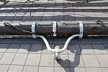 Кріплення нижніх рей зазвичай постійне і виконується за допомогою бо́ргів — коротких ланцюгів з гаками, закріплених на топах щогл: рея підіймається на гарделі і підвішується прикріпленим посередині стропом за гак. На невеликих суднах борг може бути залізним (у вигляді бугеля) чи тросовим[4]: строп реї підвішується до топа на тросі. Вищі реї підіймаються снастями рухомого такелажу: марса-реї — за допомогою марса-фалів (драйрепів), брам-реї, бом-брам-реї — за допомогою брам-горденів і бом-брам-горденів. До щогли середина реї фіксується за допомогою бейфута — кріплення, що утримує рею на певній відстані від щогли і разом з тим уможливлює її нахил у сторони і поворот. У нижніх рей використовуються залізні бейфути з вертлюгами; товстого обшитого шкірою або спорядженого кульками троса, яким 2-3 рази обвивається щогла, а кінці кріпляться до реї. Колись вживані з нижніх реях тросові бейфути споряджалися бейфут-талями, що міцно стягали їх на щоглі[5], ходові кінці яких спускалися до палуби. Тросові бейфути нижніх рей можна було віддавати і витягати, бейфути марса-рей переважно закріпляються наглухо, бейфути вищих рей є знімними[6]. Легкі реї найвищих вітрил підіймаються на ракс-бугелях — кільцях з гаками, що пересуваються по брам-стеньгах[7].