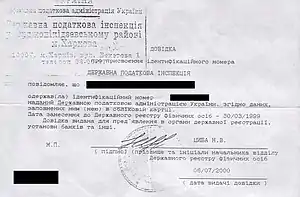 - Індивідуальний податковий номер. igov.org.ua — Портал державних послуг. Архів оригіналу за 01 жовтня 2019. Процитовано 1 жовтня 2019.