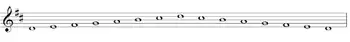 ре — мі — фа♯ ^ соль — ля — сі — до♯ ^ ре.