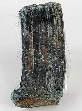 - рибекіт волокнистий (крокідоліт, крокідоліт-азбест — агрегати рибекіту, які складаються з волокнистих індивідів):