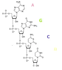 Рибонуклеїнова кислота, РНК — клас нуклеїнових кислот, лінійних полімерів нуклеотидів, до складу яких входять залишок фосфорної кислоти, рибоза (на відміну від ДНК, що містить дезоксирибозу) і азотисті основи — аденін, цитозин, гуанін і урацил (на відміну від ДНК, що замість урацила містить тимін).
