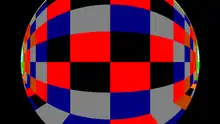 - Еквідистантна (лінійно масштабована): . Зберігає кутові відстані. Практична до кутових вимірювань (наприклад, зоряних карт). Програмний продукт PanoTools використовує цей тип відображення.