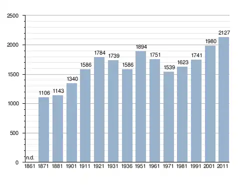 Станом на 31 грудня 2014 року в муніципалітеті офіційно проживало 147 іноземців з 21 країни, серед них 87 громадян країн Євросоюзу та 3 громадяни України.[4]