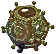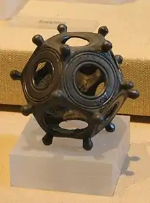 Римський додекаедр — невеликий порожнистий об'єкт, зроблений з бронзи або (рідше) каменю, геометричну форму якого утворюють дванадцять плоских граней (п'ятикутників). Римські додекаедри також мають прикрасу у вигляді «шишок» на кожній з вершин п'ятикутників, а п'ятикутні грані мають круглі отвори різного діаметра. Відкрито в XIX столітті і датовано приблизно II—IV століттям.