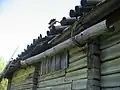 Жолоб (риштак)[4] кріпиться під даховим звисом на гаках чи кронштейнах таким чином, щоб приймати воду з поверхні покрівлі (а також з розжолобків за їхньої наявності). Жолоб зазвичай складається з окремих ланок, сполучених герметичними з'єднувачами. Ланки жолоба можуть бути прямими, кутовими і спорядженими лійками («канадки»). Кінці жолоба виходять на лійку труби, але вони можуть закриватися заглушками (лійка розміщується всередині жолоба).