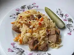 У арабській кухні, рис є інгредієнтом багатьох супів і страв з риби, птиці та інших видів м'яса. Він також використовується, для фарширування овочів або загортається у виноградне листя (долма). У поєднанні з молоком, цукром і медом, рис використовується у десертах. У деяких регіонах, таких як Табаристан, хліб виробляється з використанням рисового борошна. Середньовічні ісламські тексти згадують про застосування рослини у медичних цілях.[26]