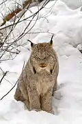 ![]() | Lynx canadensis | Довжина голови й тіла: 80–100 см, довжина хвоста: 5,1–13,8 см, вага: 5,1–17,2 кг | Рись канадська, як правило, населяє північні лісові райони Північної Америки. |