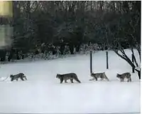 | Ареал станом на 2016 рік: оранжевим — реінтродукція, світло-бузковим — проживання можливе, темно-бузковим — проживання певне | |