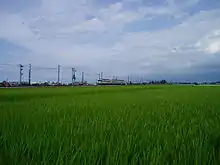 ![]() Поле біля залізниці (серпень, Японія). |
