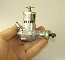 Карбюратор складається з дифузора відлитого разом із задньою кришкою картера та жиклера з регулювальної голкою. Двигуни ранніх випусків комплектувалися коком–гайкою для кріплення пропелера. Пальним для двигуна була суміш діетилового (медичного) етеру, гасу (світлювальний гас), рицинової (касторової) олії та мінеральної моторної оливи.