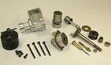 Поршень двигуна чавунний, підігнаний по гільзі з малим зазором для отримання хорошої компресії. Шатун штампувався з матеріалу дюралюмінію Д16-Т, мав два канали для змащення. Циліндричний золотник слугував для розподілу робочої суміші під час роботи двигуна.