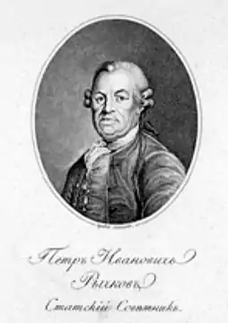 - Пекарский. Сношения Петра Ивановича Рычкова с академией наук в XVIII столетии. — СПб., 1866