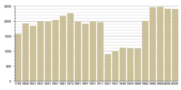 Динаміка населення (base Cassini de l'EHESS pour les nombres retenus jusque 1962[3], base Insee à partir de 1968 (population sans doubles comptes puis population municipale à partir de 2006)[4] · [5] ):