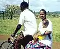Фермер на велосипеді-роадстері, який використовується для перевезення вантажів в Індонезії.