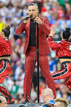 ![]() Роббі Вільямс виступає на церемонії відкриття Чемпіонату світу з футболу в Москві, 2018 | |