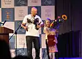 Роберт Веґнер з дочками під час отримання двох премій Зайделя в 2013 році