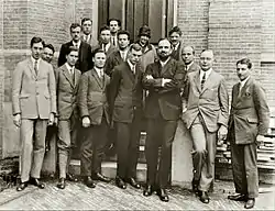 Джуліус Роберт Оппенгеймер[прим 1] (англ. Julius Robert Oppenheimer, 22 квітня 1904, Нью-Йорк — 18 лютого 1967 Принстон, Нью-Джерсі, США) — американський фізик-теоретик, професор фізики Каліфорнійського університету в Берклі, член Національної академії наук США (з 1941 року). Широко відомий як науковий керівник Мангеттенського проєкту, в рамках якого в роки Другої світової війни розроблялись перші зразки ядерної зброї; через це Оппенгеймера часто називають «батьком атомної бомби».[21] Атомна бомба була вперше випробувана в Нью-Мексико в липні 1945 року; згодом Оппенгеймер згадував, що в той момент йому прийшли в голову слова з Бхагавад-гіти: «Якби на небі разом зійшли сотні тисяч сонць, їх світло могло б зрівнятися з сяйвом, що линуло від Верховного Господа… Я — Смерть, великий руйнівник світів, що несе загибель всього живого».[прим 2]