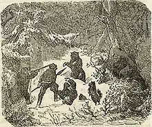 Мисливська рогатина використовувалась для полювання великих звірів (кабанів, ведмедів). Характерною особливістю мисливських рогатин була поперечина під вістрям яка не давала можливості звіру дістатися мисливця, настромившись на спис. Під час полювання на грубого звіра рогатину використовували таким чином — рогатину виставляли назустріч звіра, який кидався на мисливця, при цьому ратище впиралося в землю заздалегідь або ж одразу після ураження тварини. В спробі дістатися до мисливця звір дедалі глибше настромлювався на вістря рогатини, а поперечина не дозволяла дістати мисливця.