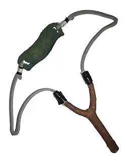 - Англійська назва цього приладу slingshot дала найменування одному з видів купальників — слінг-бікіні.