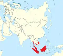Вид поширений в Південно-Східній Азії. Трапляється на півдні М'янми і Таїланду, в Камбоджі, на півдні В'єтнаму та Лаосу, на Малайському півострові, Суматрі та Калімантані. Вид мешкає у тропічних дощових лісах.