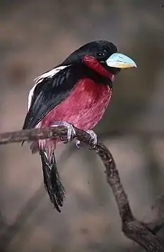 Рогодзьоб червоночеревий[2] (Cymbirhynchus macrorhynchos) — вид горобцеподібних птахів родини рогодзьобових (Eurylaimidae).