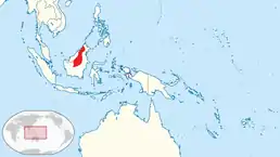 Ендемік Калімантану. Поширений у гірських дощових лісах на висоті до 1700 м над рівнем моря.[3][4]