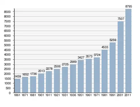 Станом на 31 грудня 2014 року в муніципалітеті офіційно проживали 543 іноземці з 44 країн, серед них 122 громадяни країн Євросоюзу та 27 громадян України.[4]