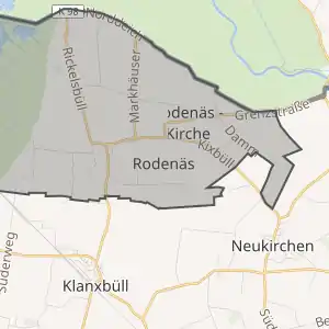- Роденес (нім. Rodenäs; півн.-фриз. Runees, Rornees; дан. Rødenæs; пд.-ют. Rånæjs) — сучасна назва.
