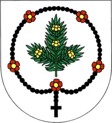 Розарій зображений на гербах іспанського муніципалітету Вільянуева-дель-Росаріо та міста Рота, чеського селища Мнішек (чеськ. Mníšek) тощо.