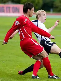 | Віталій Розгон (у червоному) в грі за «Машук-КМВ» | ||||||||||||||||||||||||||||||||||||||||||||||||||||||||||||||||||||||||||