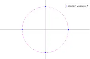 Кожну з підмножин із сусідніх точок може бути ізольовано кругом (показано один із чотирьох).