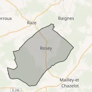 - Rosey sur le site de l'Insee, наведено за французькою вікіпедією
