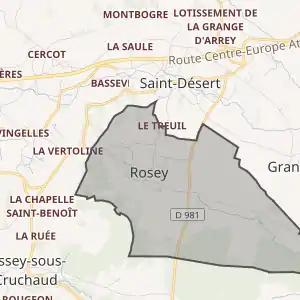 - Rosey sur le site de l'Insee, наведено за французькою вікіпедією