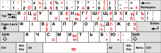- надати 4 літери з російської абетки та одну з білоруської, щоб україномовним користувачам, що вживають також російську або білоруську, не доводилось встановлювати додаткові розкладки.
